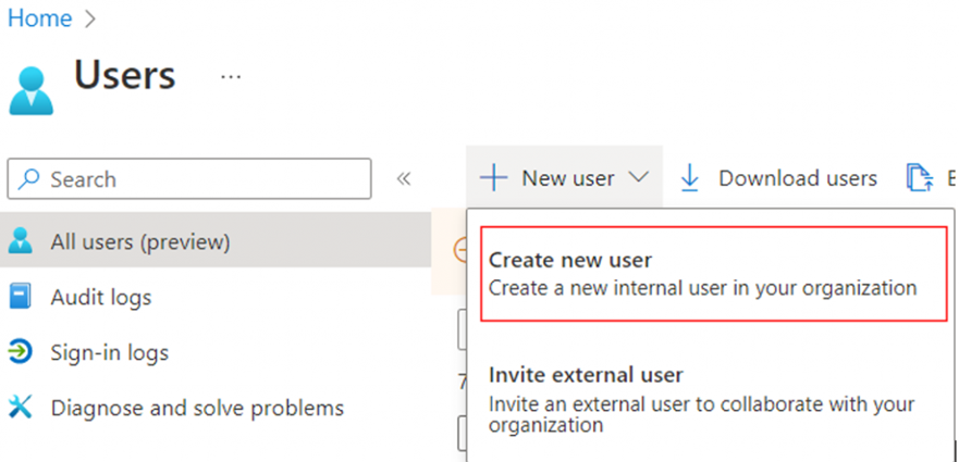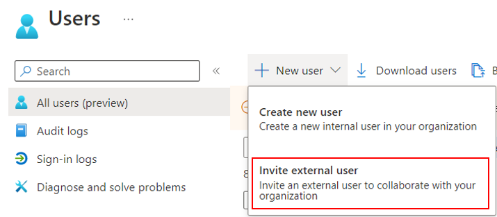 En Users, seleccionamos New User, después le damos a Invite a external user.