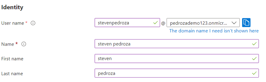 En Identity rellenamos los campos: