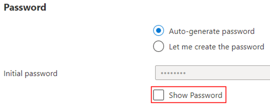 En el apartado Password, podemos crear una contraseña o generar una automáticamente (Recomiendo automáticamente, ya que al iniciar sesión por primera vez, te pide cambiar la contraseña ):