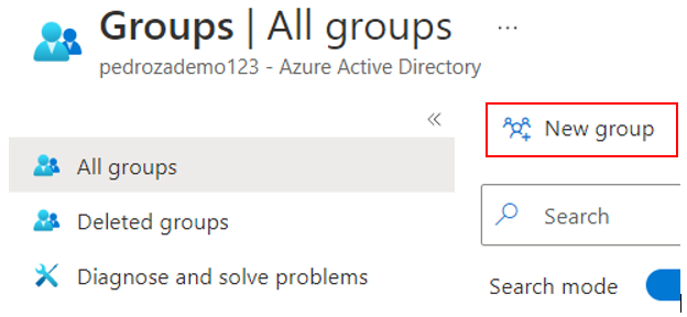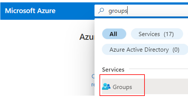 En el buscador del panel de control de Azure buscamos Groups: