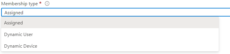 En Membership Type, solo funciona para Licencias de Azure AD Premium, con las Azure AD free sale por defecto en Assigned.