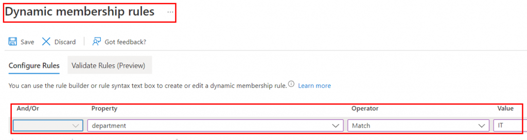 Dynamic User/Device: Con esta manera podemos seleccionar los miembros del grupo a través de una regla. Por ejemplo puedo decir que se añadan en el grupo todos los usuarios que trabajen en el departamento IT.